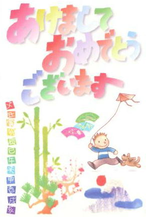 明けましておめでとうございます。今年もよろしくお願い申し上げます。こちらが今年のわたくしの年賀状となっております。もちろん私が描いた素材ではありませんが、ほしいですか?もちろんあげません。初詣はいつもの様に、自宅そばの神社へ行ってまいりました。それから‘NHK様・年の初めはさだまさし様’を見ました(留守録)。そうでしたか‘パピヨン’を飼っていらしたのでしたか、と言いつつどんなわんちゃんだったか調べてわかったんですけれども、それでは、は〜い‘さだ’ちゃまいらっちゃいね〜お座りでちゅよお手でちゅよ〜(←‘パピヨン’だろ!!!)、‘NHK様・プロジェクトX〜最終回’見ました。‘中島みゆき’嬢